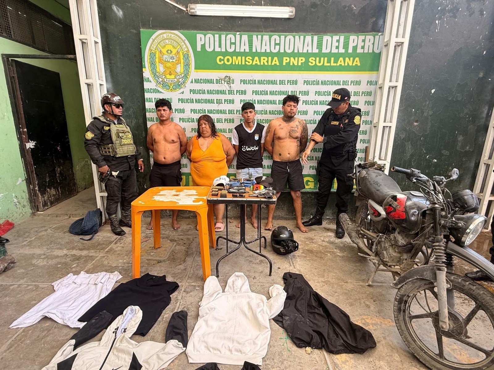 La captura se produjo luego de acciones de inteligencia que informaron sobre estos sujetos que se escondían en una vivienda de la calle Martínez Chapoñan del A.H. Nueva Esperanza. En este inmueble fueron capturados José Adriano J. V. (25) (a) «Chicho», sindicado como el presunto cabecilla. Además, Francis Michel T. H. (18) (a) «Mono», Sofía Raquel B. C. (30) (a) «Cara de chancho» y Daniel Gustavo J. V. (26) (a) «Flaco»